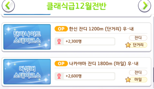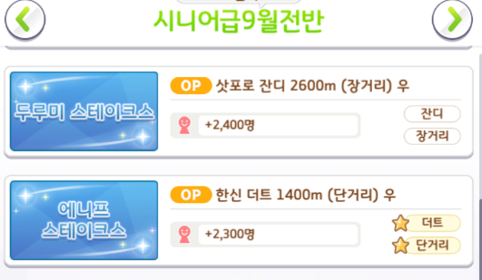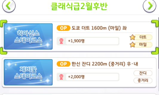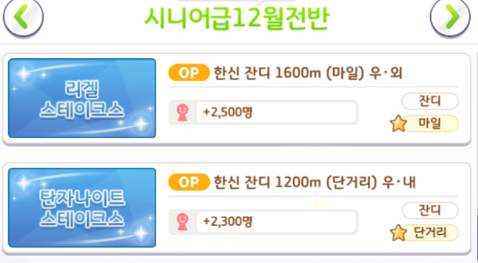 레이스 장소 정보 [장소 / 경기장 적성 / 거리 적성 / 팬 수]