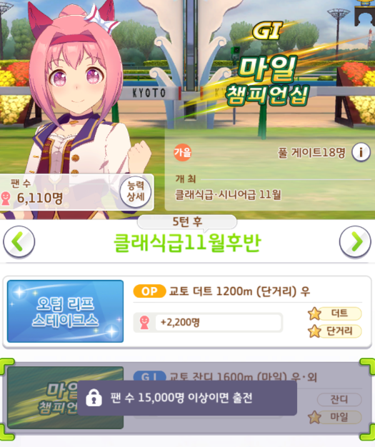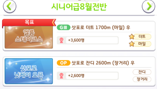 교토 우마무스메 스테이크스 [교토 / 잔디 / 단거리 / +3600]
