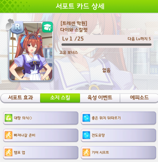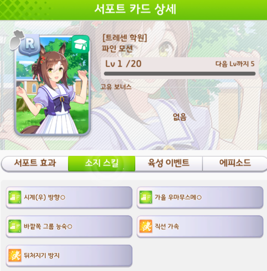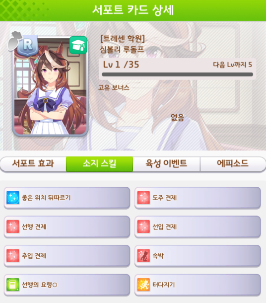 <이벤트>는 육성 이벤트에서 추가로 얻을수 있는 스킬입니다.