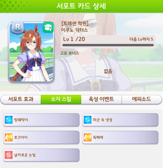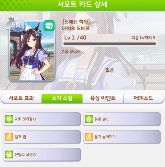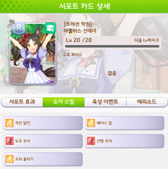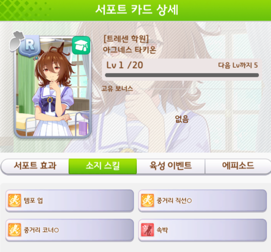 | [우마무스메] 근성 R카드 서포트 거리 및 적성 (Umamusume) (0) | 2022.07.01 |