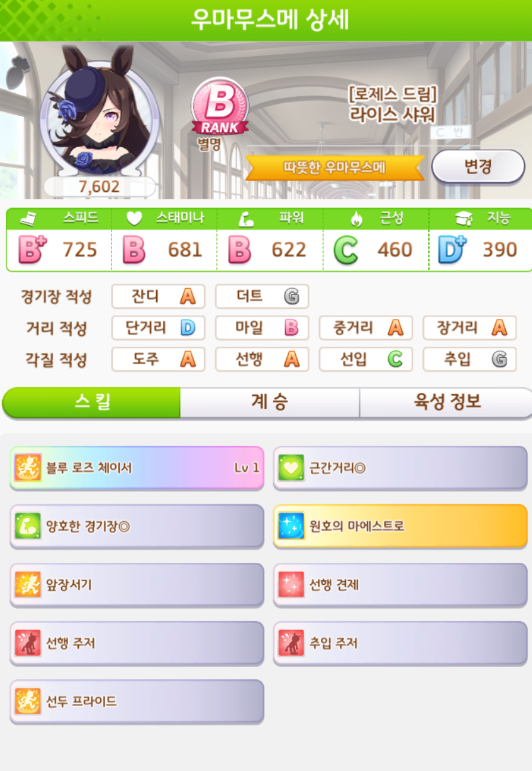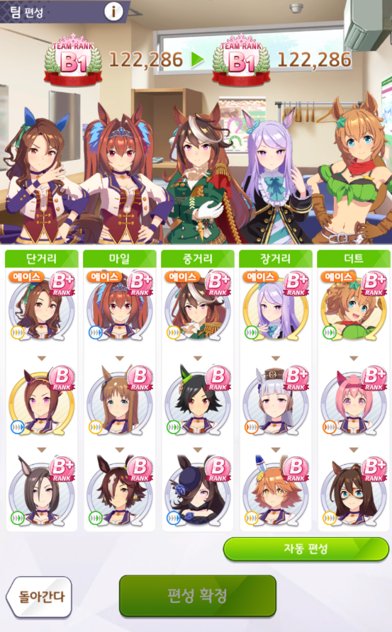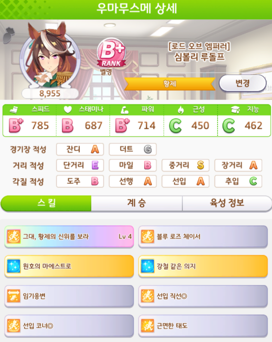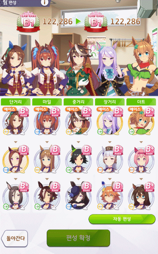 만약에 단거리 + 더트가 위의 캐릭터들중에서도 없으시다면 이제 D등급에서 올려야한다.