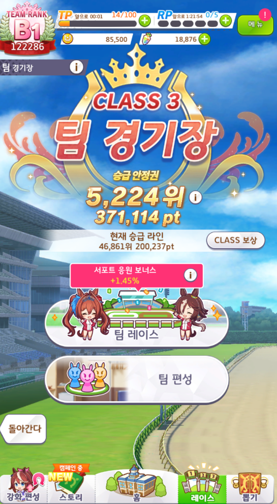 팀 레이스 경기장 클래스6 유지 안정권 공략