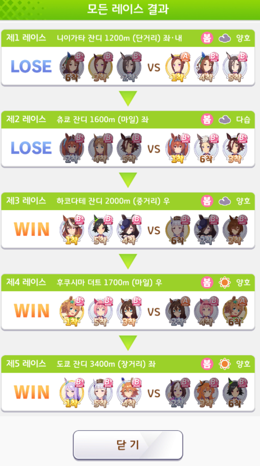 클래스6 팀 레이스 경기장 말딸 육성 후기 정보