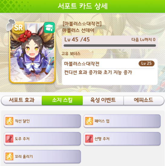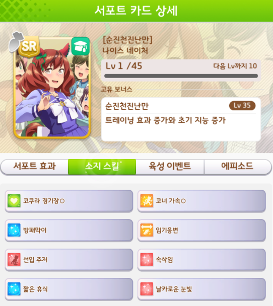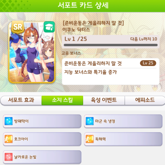 | [우마무스메] 근성 SR카드 서포트 거리 및 적성 (Umamusume) (0) | 2022.07.04 |
