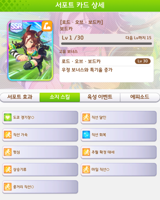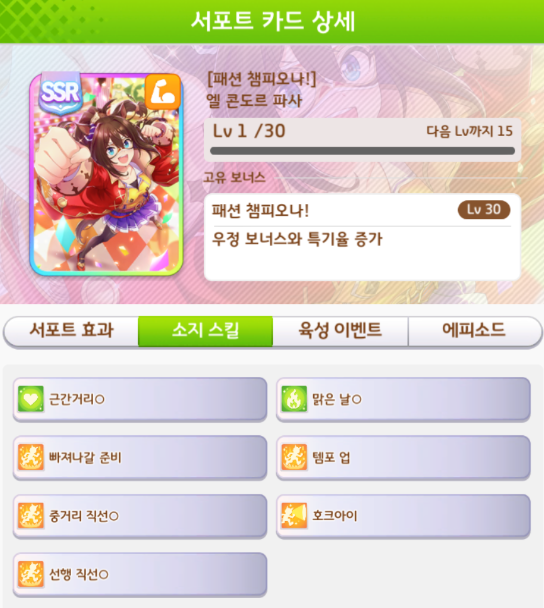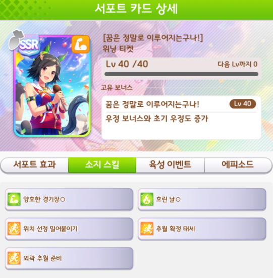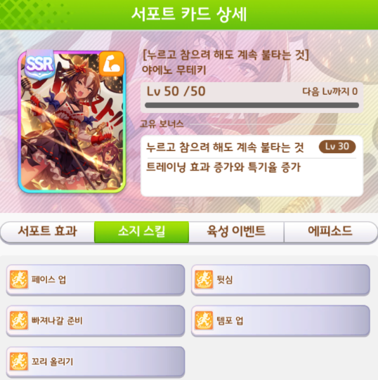 스태미나 SSR카드 서포트 거리 및 적성 : https://codiyoutsu90.tistory.com/500