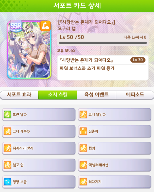 스피드 SSR카드 서포트 거리 및 적성 : https://codiyoutsu90.tistory.com/488