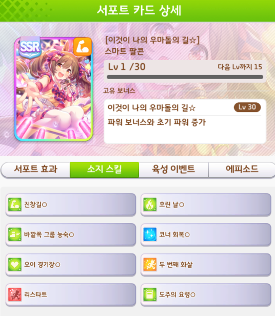 근성 SSR카드 서포트 거리 및 적성 : https://codiyoutsu90.tistory.com/505