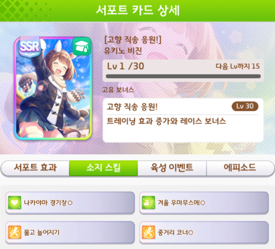 스태미나 SSR카드 서포트 거리 및 적성 : https://codiyoutsu90.tistory.com/500