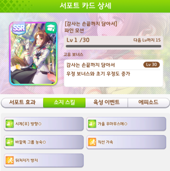 파워 SSR카드 서포트 거리 및 적성 : https://codiyoutsu90.tistory.com/491