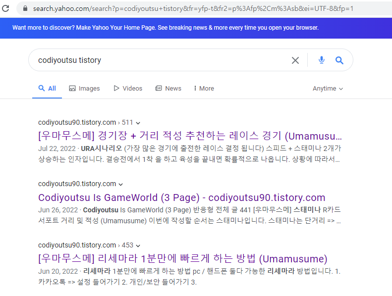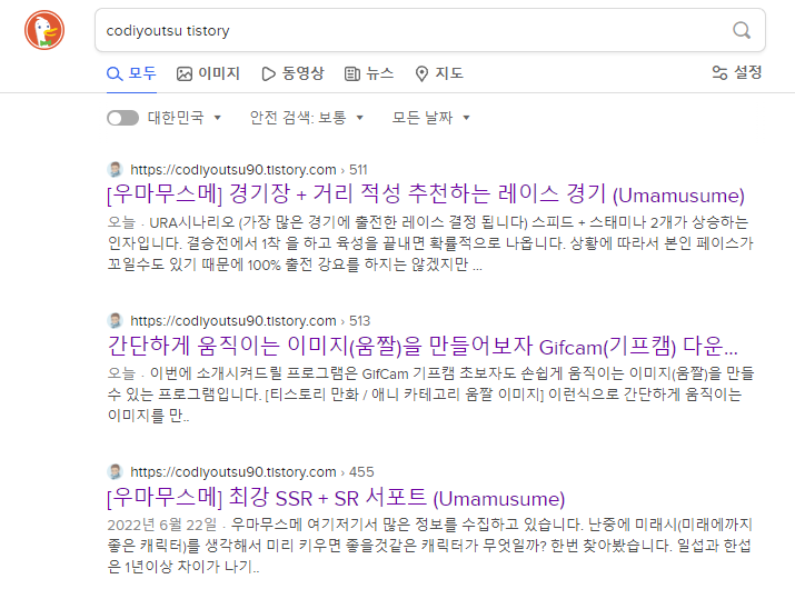 한국 모든 검색엔진 사이트에서 제 티스토리 블로그가 잘 보이며