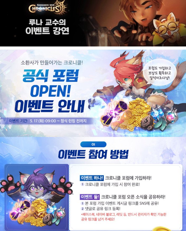소환사가 만들어가는 크로니클! 공식 포럼 OPEN! 이벤트 안내
