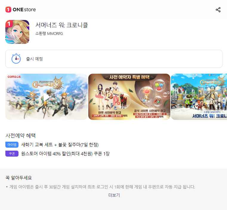 사전예약을 원스토어로 하시면 40% 할인 쿠폰을 1장 받으실수 있습니다.