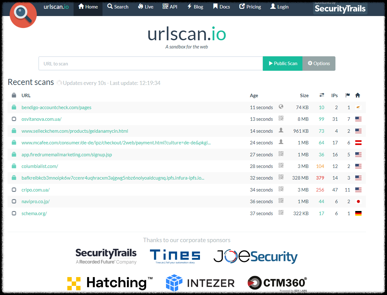 사이트 주소 : https://urlscan.io/