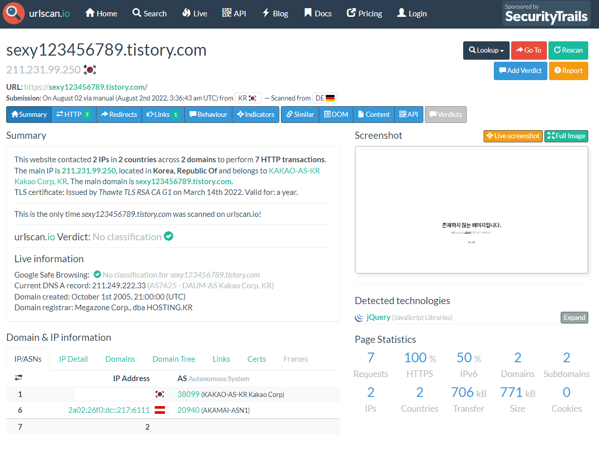 sexy123456789.tistory.com 검사해봤습니다.