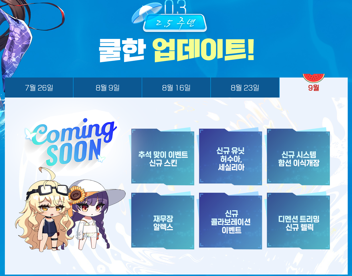 8월 9월 업데이트 및 이벤트뿐만 아니라