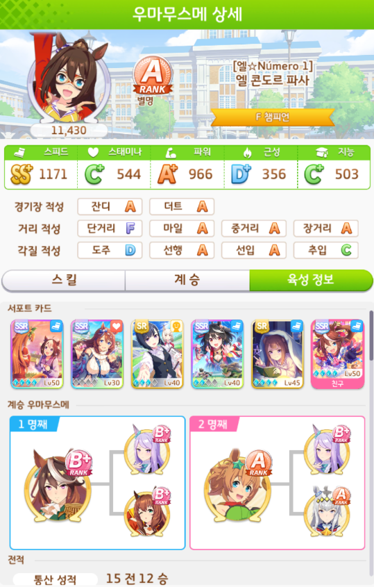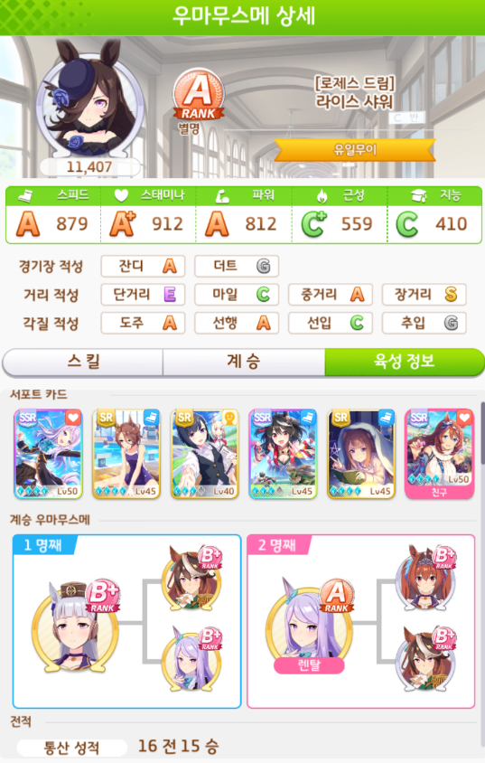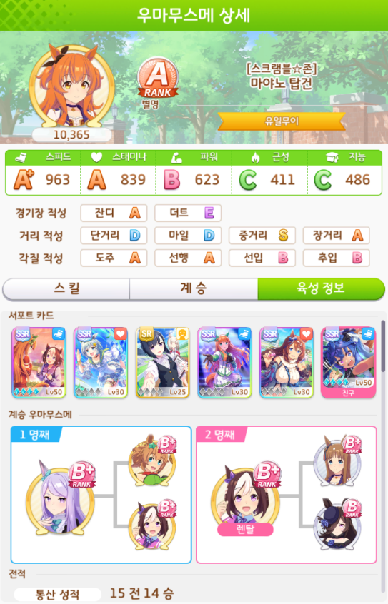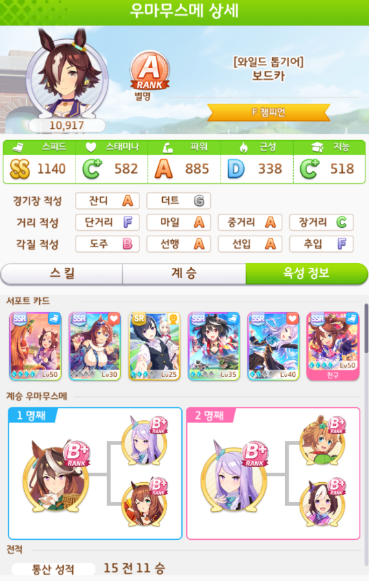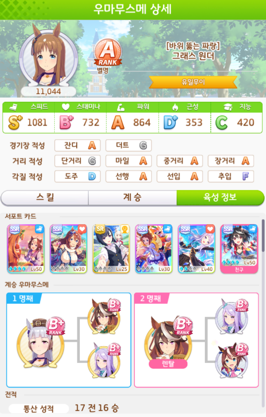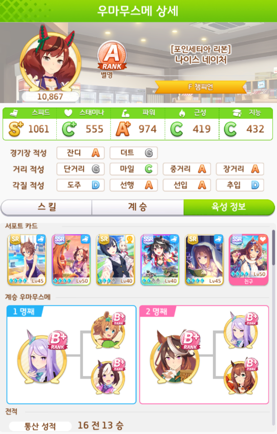 계승 : 파워6 스태미나3 + 파워5 스태미나3