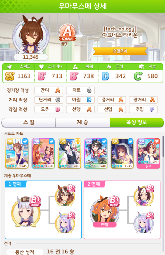 레이스 전적 16전 16승
