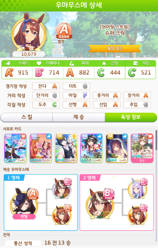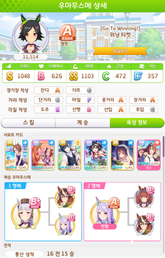 계승 : 스태미나1 파워6 + 스피드9