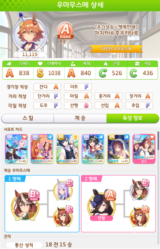 계승 : 근성2 파워6 + 지능2 스태미나3 파워3