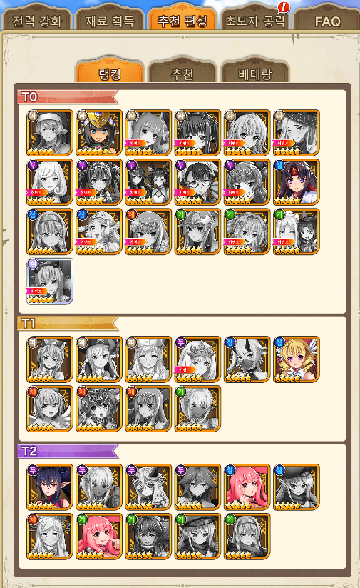 위의 0티어 + 1티어 5성 캐릭터 위주로 키우시는것을 추천합니다.