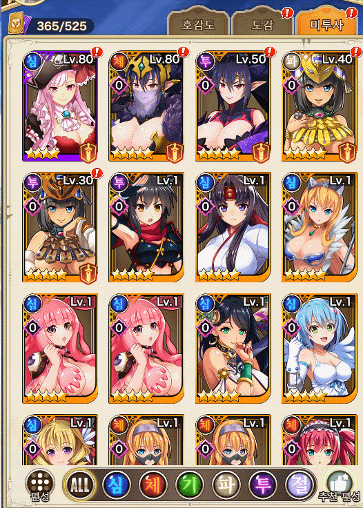 약 3일 체험하고 얻은 5성 미투사(캐릭터) 현황