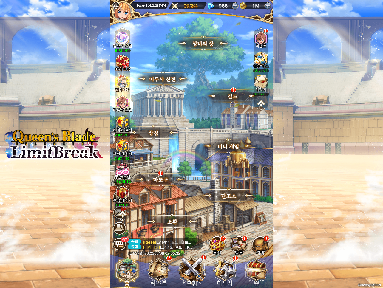 길드 => 시련(레이드) 스킬(캐릭터 강화) 보물창고(아이템 교환)