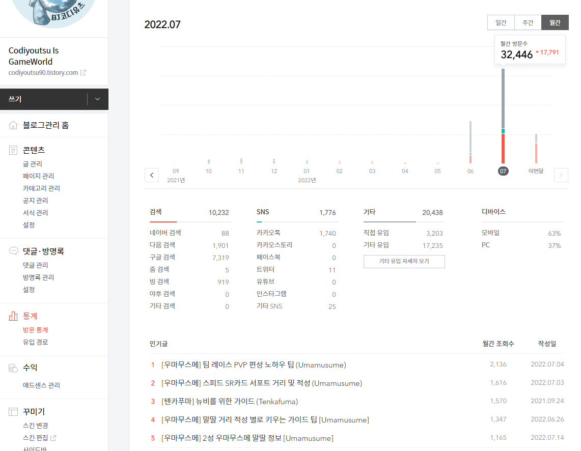 블루스크린 해결방법 131회 / 우마무스메 109회 / 텐카푸마 100회 / 다음 메일 48회 / MZK 45회