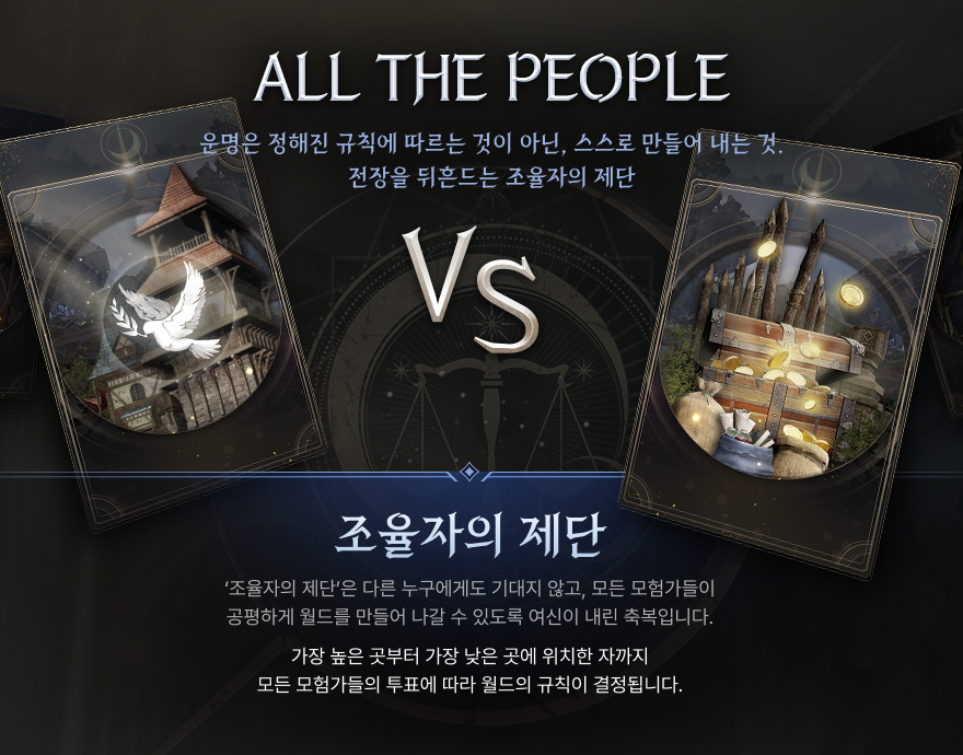 조율자의 제단은 모험가님의 투표를 통해 소속 서버에 적용되는 규칙과 효과를