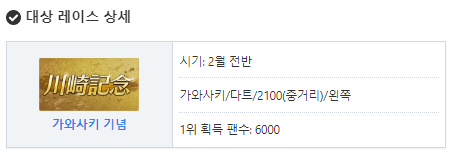 시니어 2월 전반에 나오는 가와사키 기념 더트 레이스입니다.