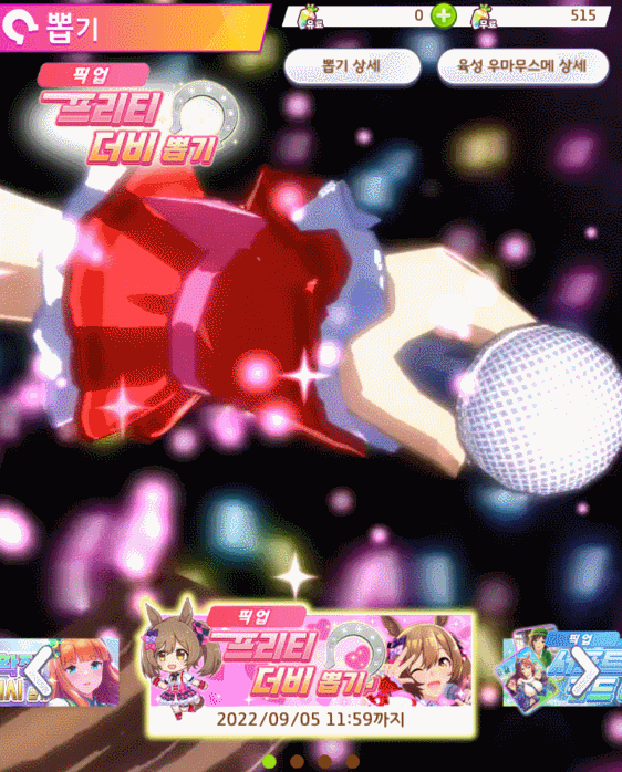 매지컬☆더비짱 쇼! => 스태미나+20 (애교 랜덤 획득)