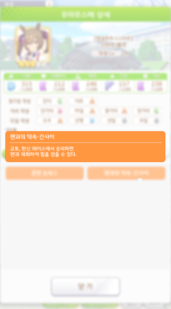 팬과의 약속 이벤트 (컨디션 +1 / PT +10 / 승리한 레이스 경기장 LV5힌트)