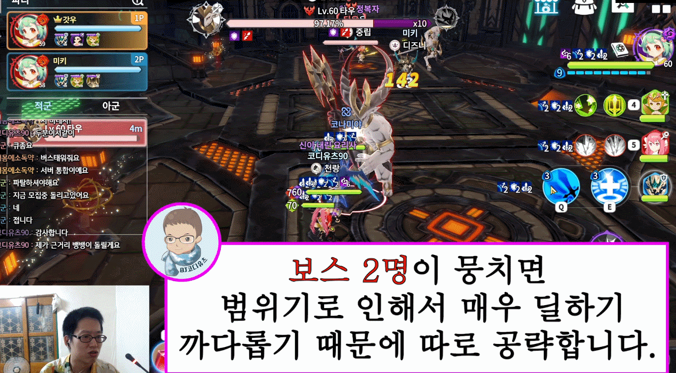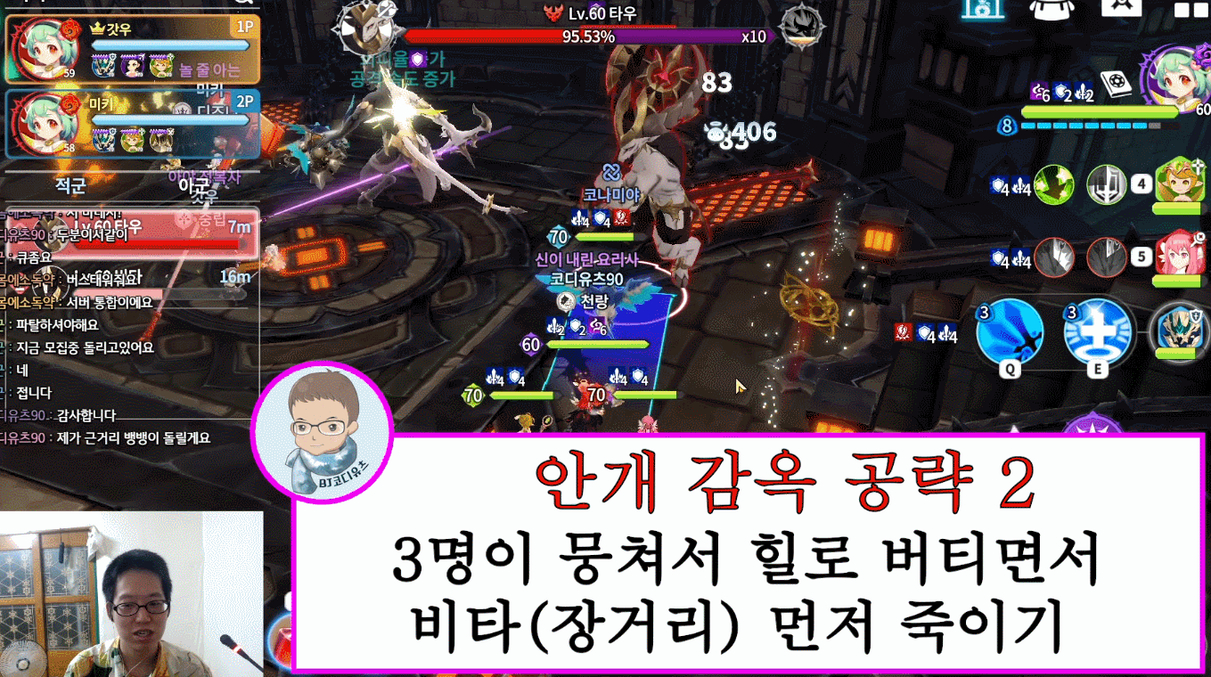 보스 2명에게 동시에 맞으면서 3명이서 힐로 버티면서 공략하는 방식입니다.