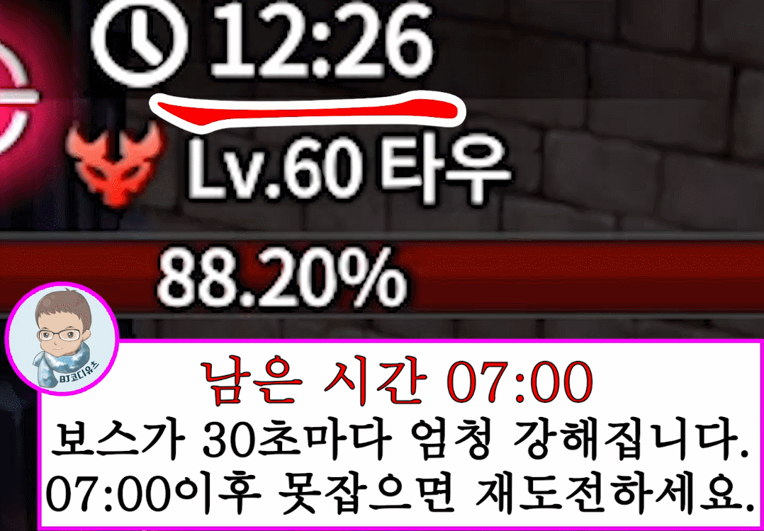 남은 시간이 7분이하가 되면 보스가 30초마다 엄청 강해집니다.