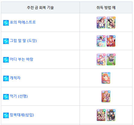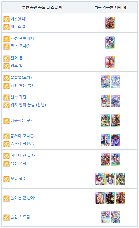 중거리 (추입 + 선입 + 선행 + 도주) 관련 서포트 카드 정보를 더 원하신다면