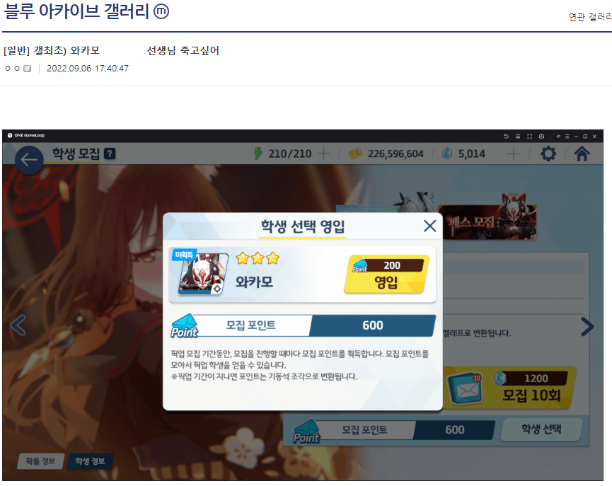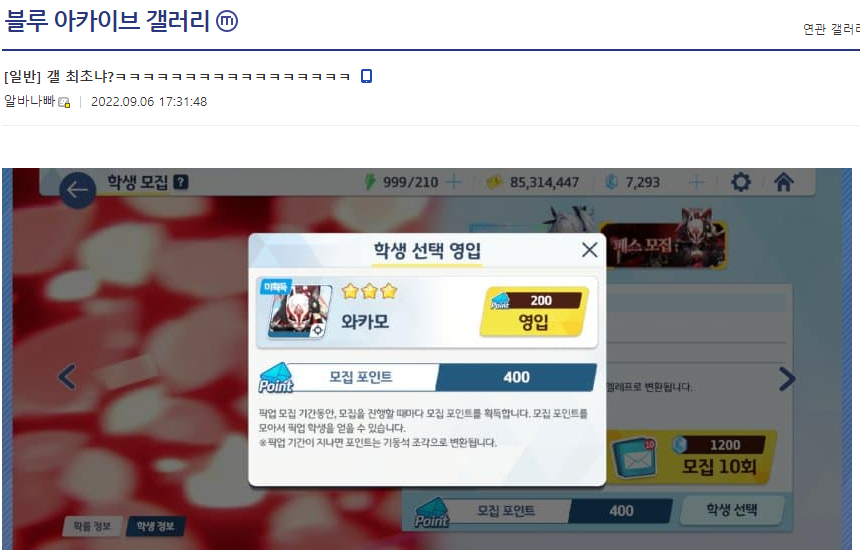어떤분은 블루아카이브 게임 갤러리에 스샷과 함께
