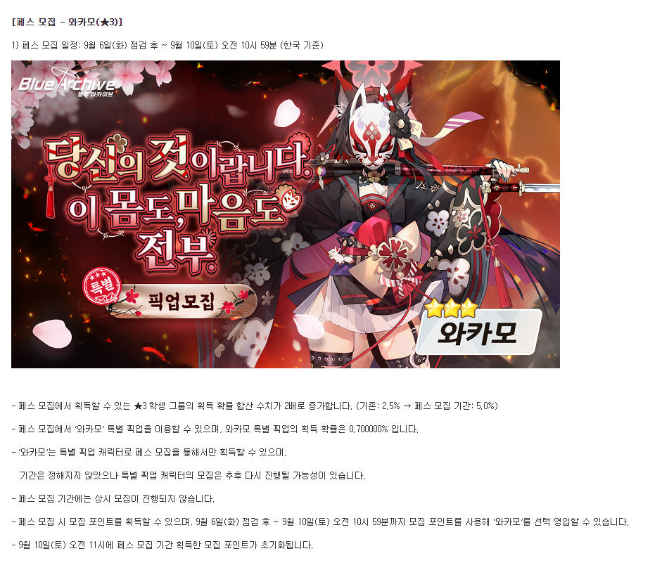 기존 모집 3성 학생 확률 2배 : 2.5% => 5.0%