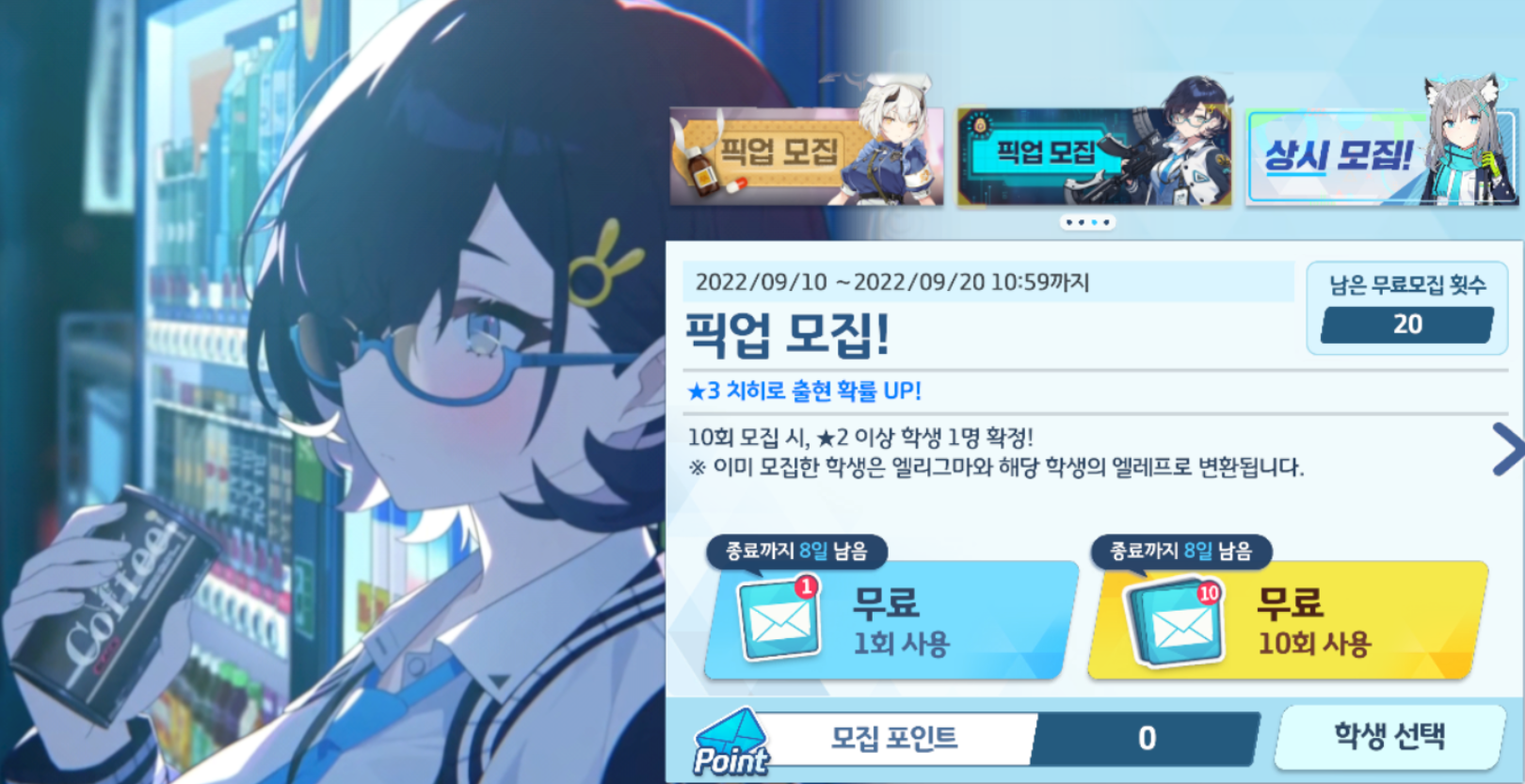 획득한 무료 모집 횟수는 이벤트 기간 내에만 사용할 수 있으며, 사용하지 않은 횟수는 9월 20일(화) 점검을 통해
