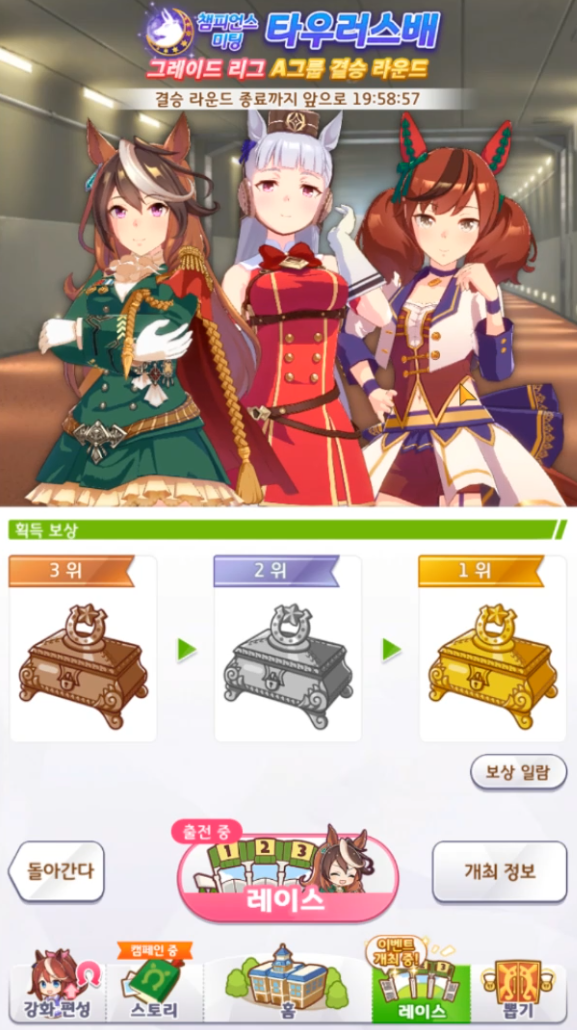 | [우마무스메] 챔피언스 미팅 타우러스배 A그룹 결승 라운드 진출 결정 (Umamusume) (0) | 2022.09.12 |