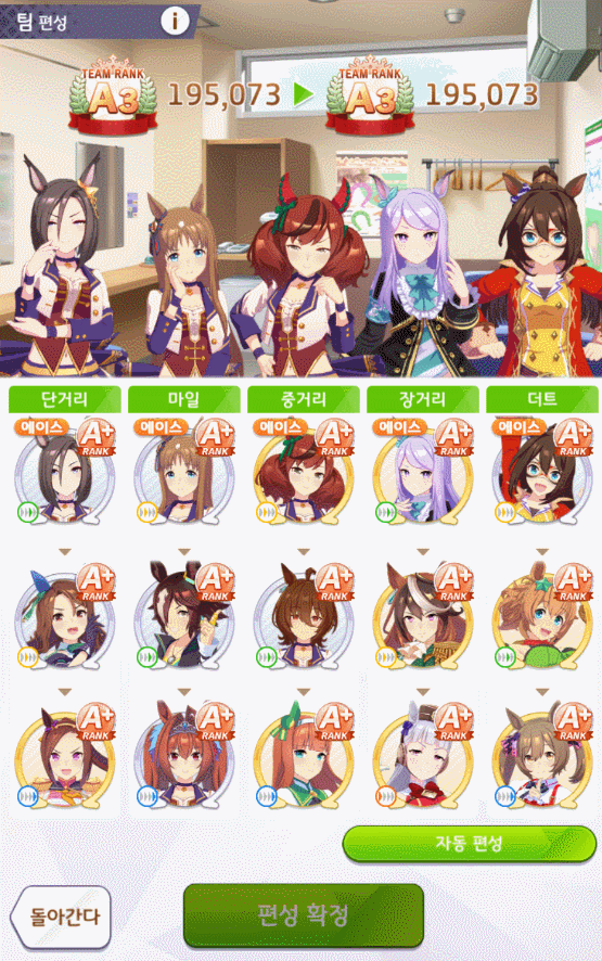 우마무스메 PVP 컨텐츠 팀 레이스 현재 한국서버 기준으로 더트 + 단거리가 매우 부족할것이다. 마일 + 중거리 + 장거리 3개는 솔직하게 자리가 넘치고 남을것이다. 어느 말딸이 효율이 좋을지 알