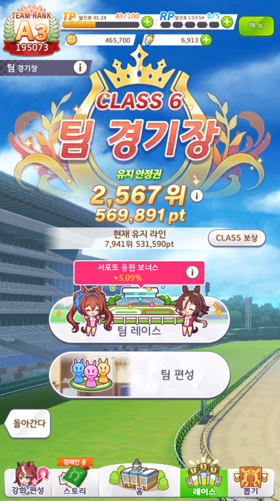 팀 레이스 경기장 CLASS6 유지 안정권 공략