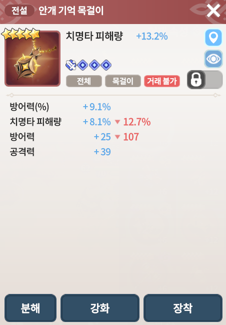 목걸이(체력%, 방어력%, 치명타 피해량%, 치명타 적중률%)