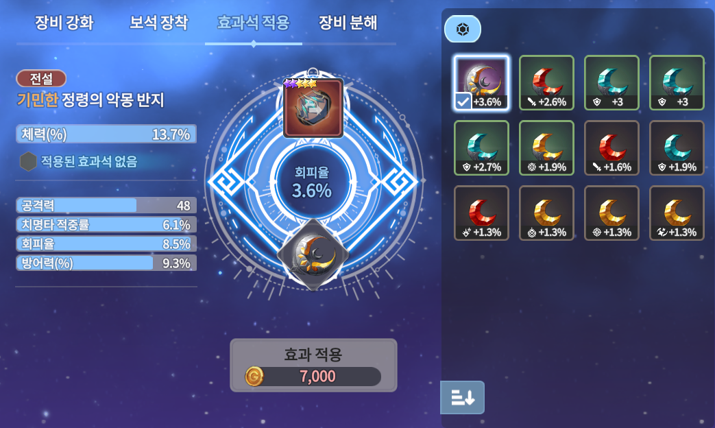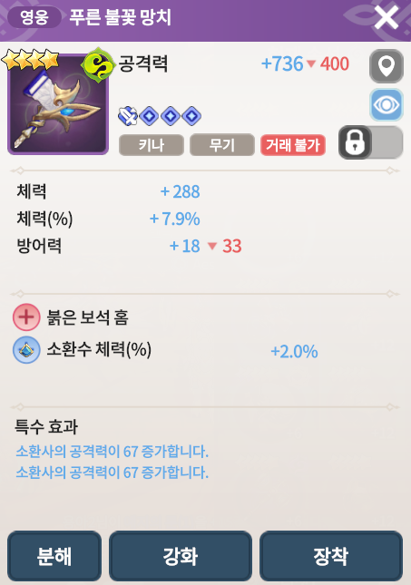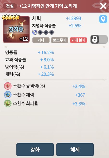 깡옵션(공격력, 체력, 방어력) 1개이하일때만 강화를 하시는것을 추천합니다.