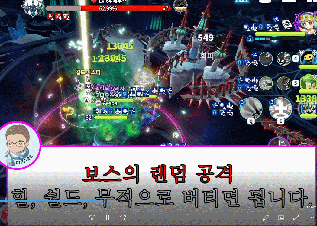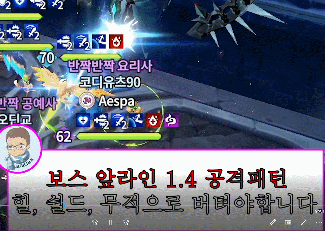 3. 힐 + 쉴드 + 무적으로 보스의 공격에서 버텨야 합니다.