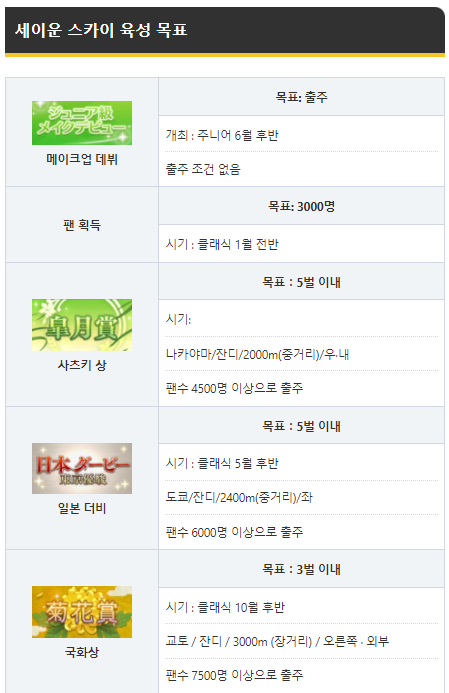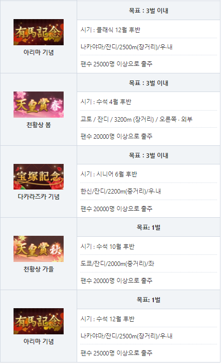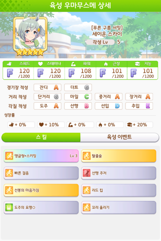 적성 => 마일 or 중거리 or 장거리 S 최우선 >>> 잔디 + 도주 S