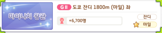 능력치 => [마일] 스피드 1200 / 스태미나 600 / 파워 1200 / 근성 400 / 지능 1200