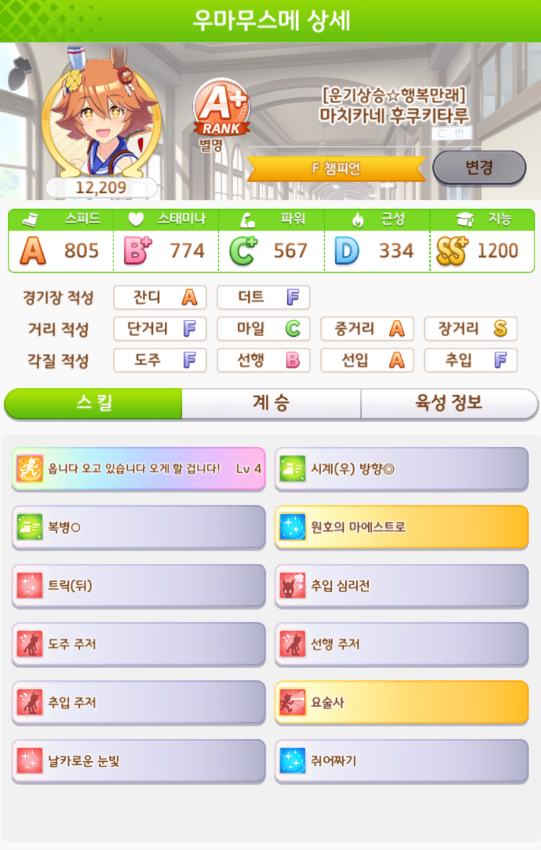 메지로 맥퀸 올인 조합을 선택했습니다.