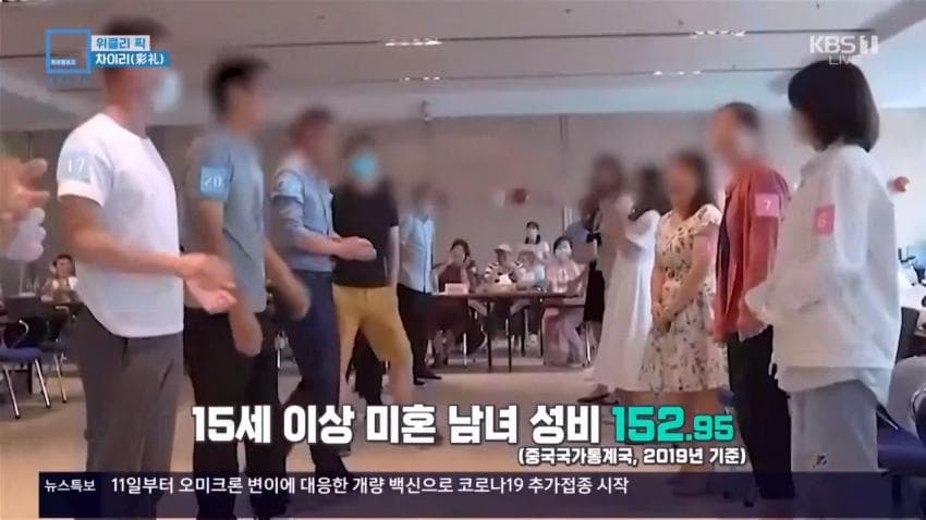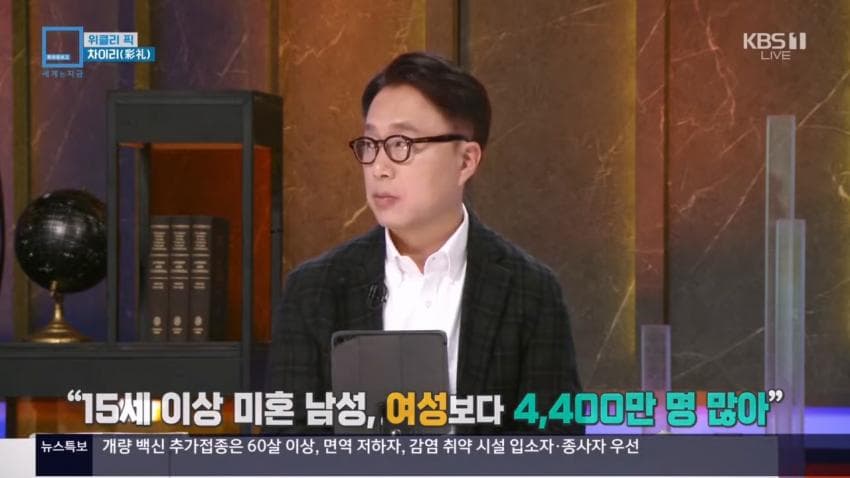 15세 이상 미혼 남성이 여성보다 약 4400만명 많다고 합니다.