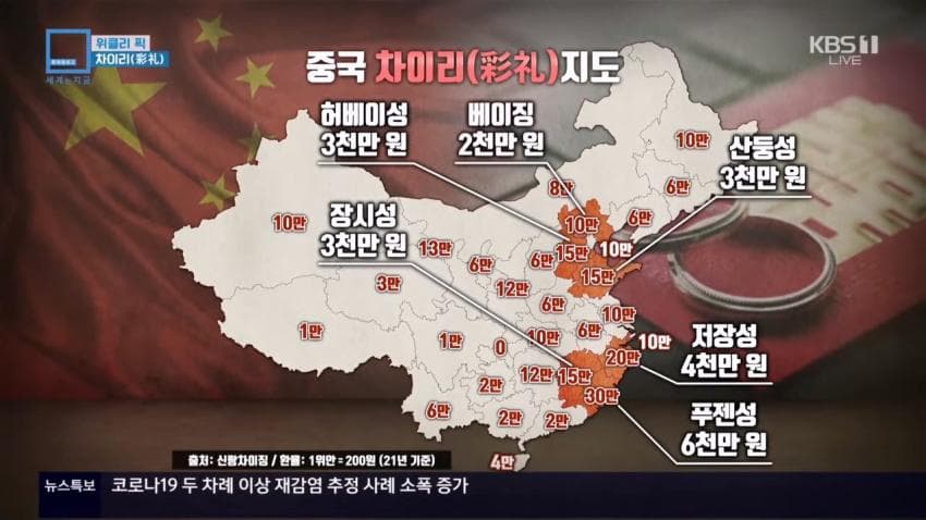 여자가 너무 귀해져서 결혼예물문화(차이리)가 노골적으로 돈을 요구하게 됩니다.