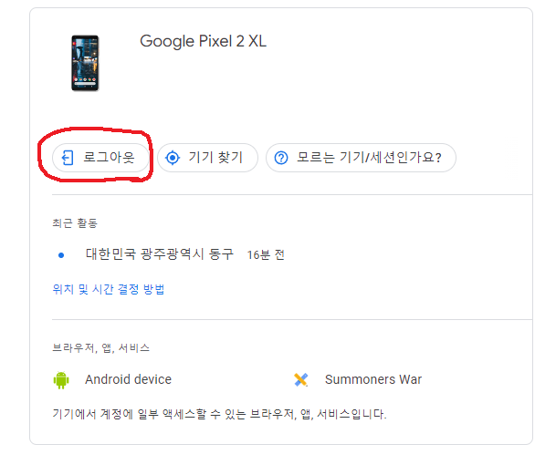 Google pixel 2XL 클릭 => 로그아웃