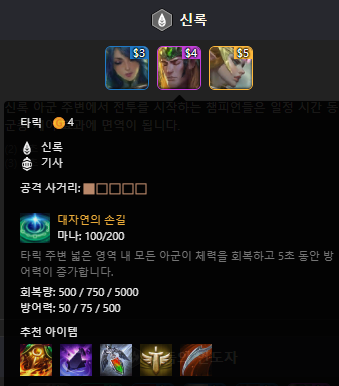 주변아군들에게 체력회복 + 물리방어력증가